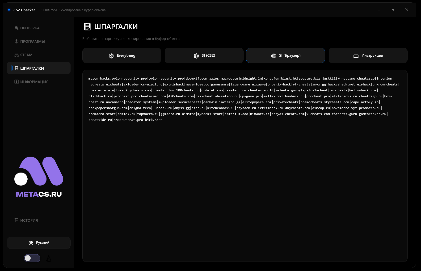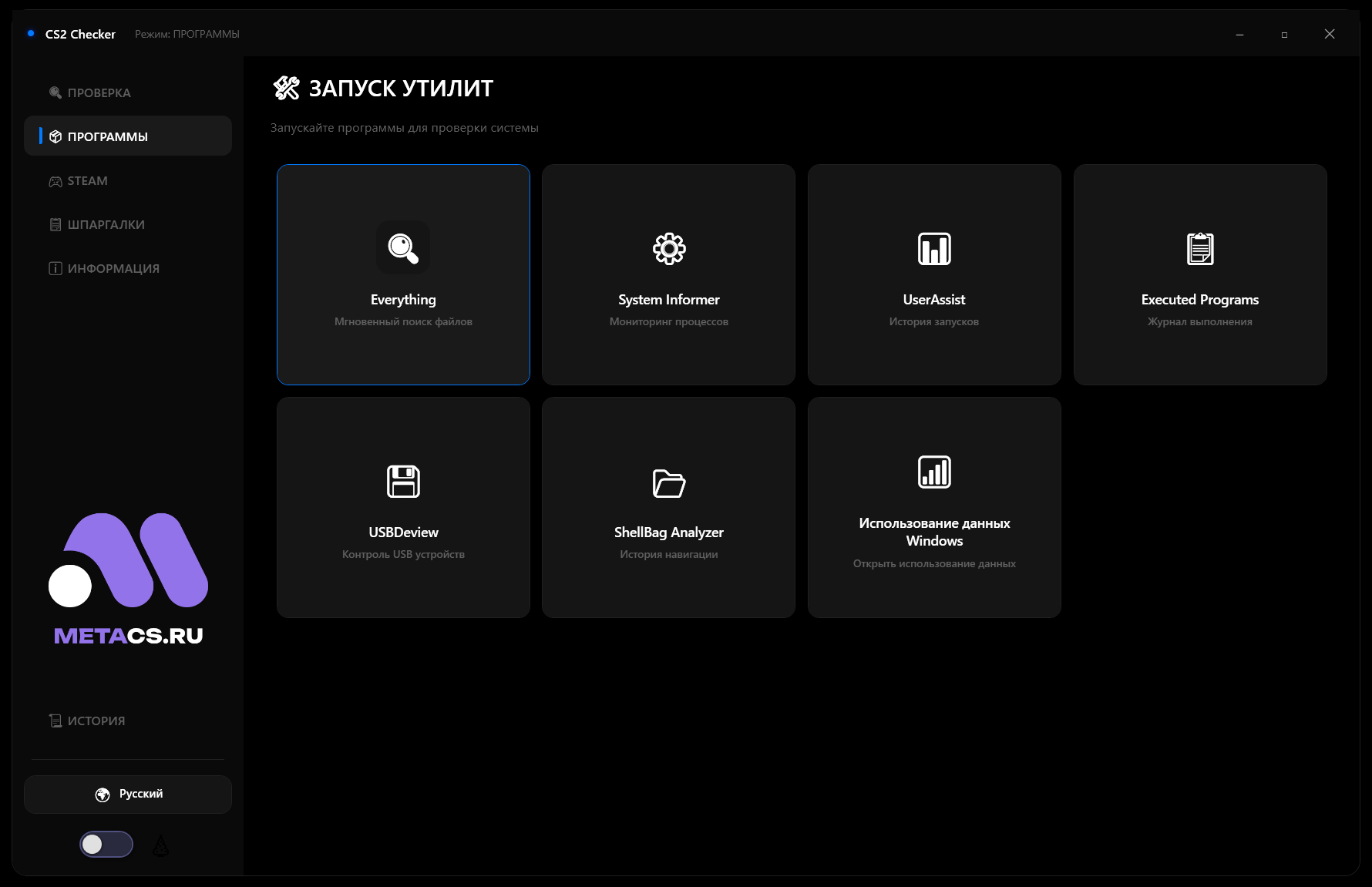 Программа анализирует все запущенные процессы на наличие подозрительных инжекторов, внешних оверлеев и скрытых утилит, взаимодействующих с клиентом игры.